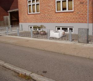 Stakittet som vist på billedet, er fremstilles på fix mål. Stakittet er kombineret med to indkørsels låger og en havelåge, det er total 8,5 meter.